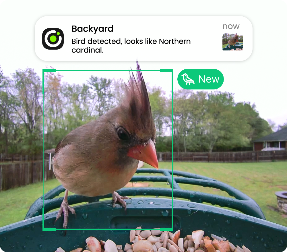Get real-time alerts for birds, pets, vehicles, & packages.