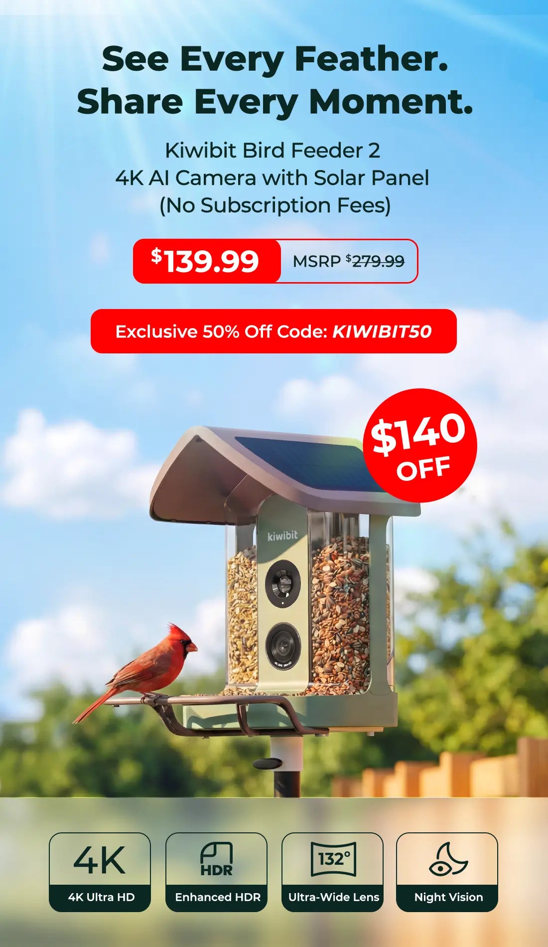 "... a notable leap beyond the 1080p or 2K resolution offered by most feeders. This visual fidelity allows users to observe subtle feather patterns, color gradients, and movement with unprecedented clarity."